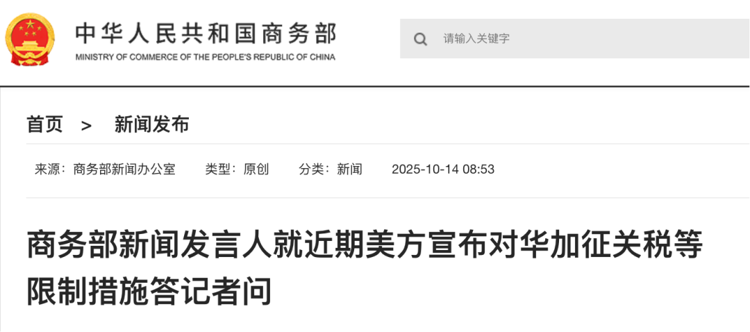 此前,10月12日,商务部新闻发言人就近期中方相关经贸政策措施情况答记者问。