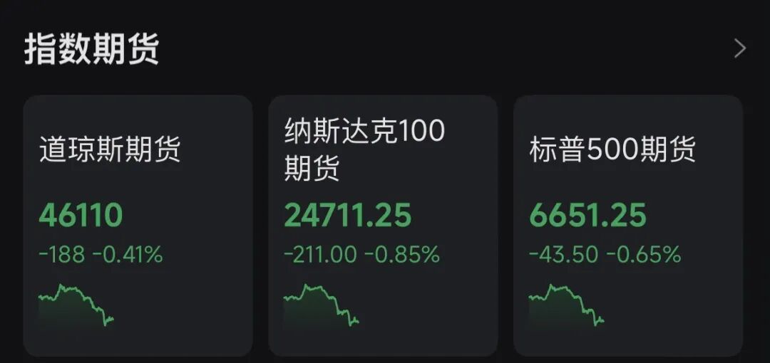 美股主要指数期货均下跌。