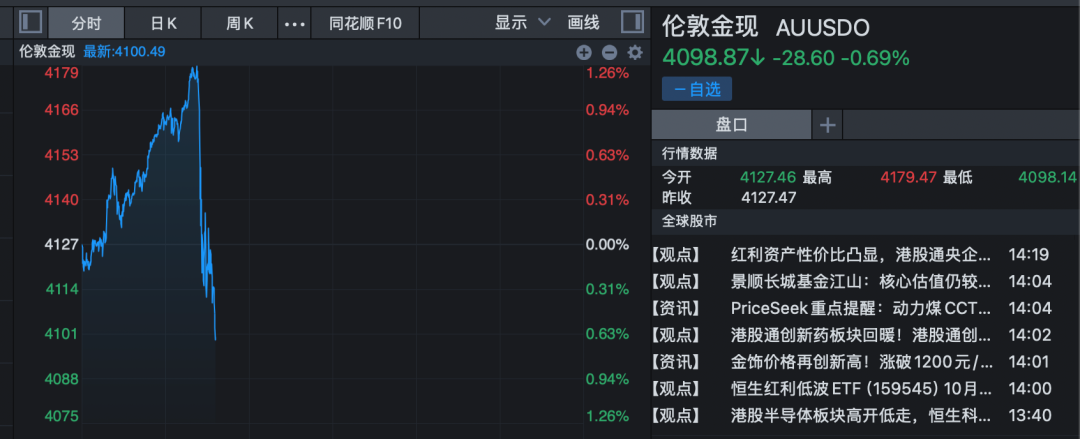 近期强势的贵金属也明显回调。国际现货黄金跌破4100美元/盎司关口;现货白银跌超3%。