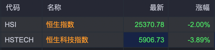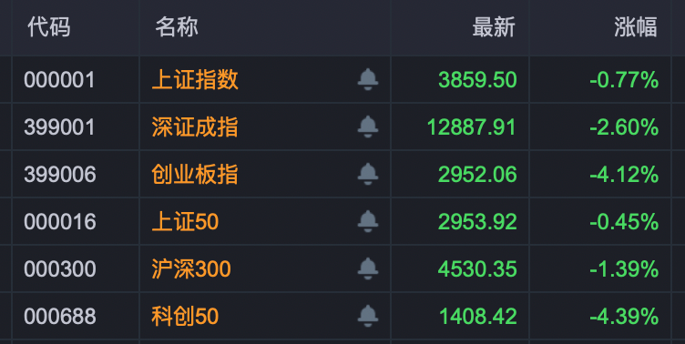 港股午后跌幅扩大。恒生科技指数跌幅为3.89%,恒生指数下跌2%。A股午后全线转跌。截至发稿,创业板指跌超4%,科创50跌超4%。沪深京三市超3400只个股下跌。