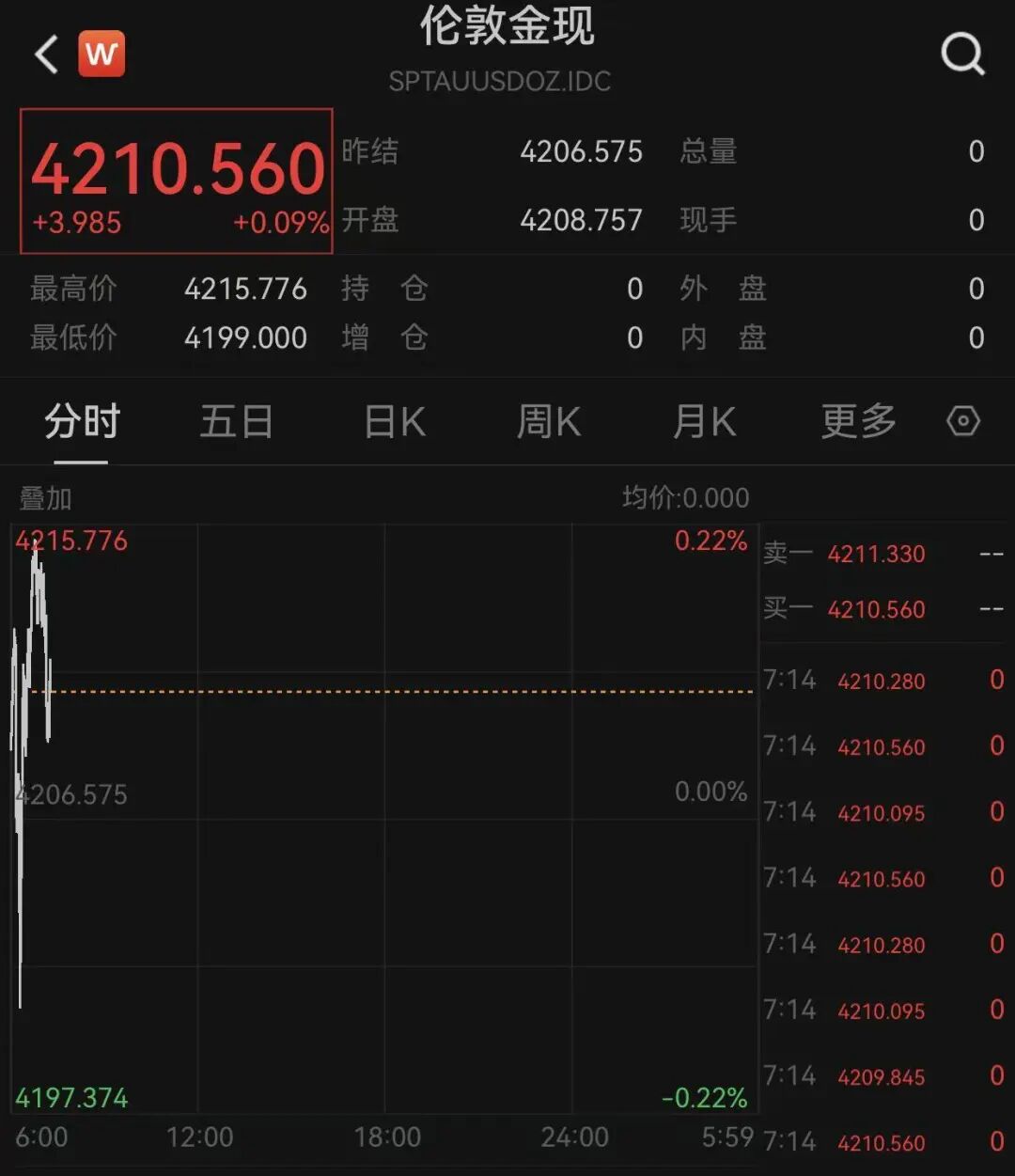 而黄金今早继续走高,截至发稿,现货黄金涨破4210美元。