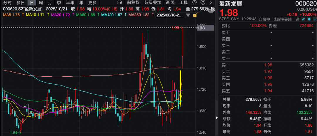 另外,房地产板块走高,盈新发展2连板,财信发展、合肥城建涨停,新城控股、珠江股份、深振业A、香江控股、深物业A跟涨。