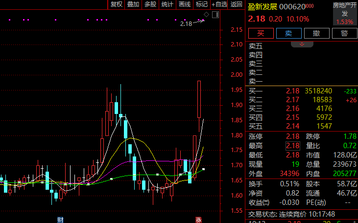 盘初,房地产板块逆势拉升,盈新发展(000620)3连板,光明地产、合肥城建、财信发展、沙河股份、天地源跟涨。