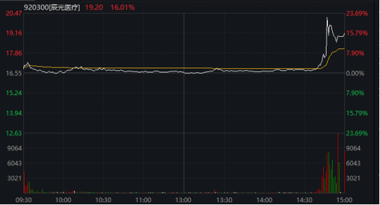 辰光医疗盘中一度涨超23%,收盘涨幅有所回落。