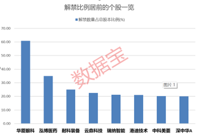 解禁比例来看,华厦眼科的解禁比例最高,达60.85%,泓博医药、耐科装备、云鼎科技、瑞纳智能、港迪技术的解禁比例居前。