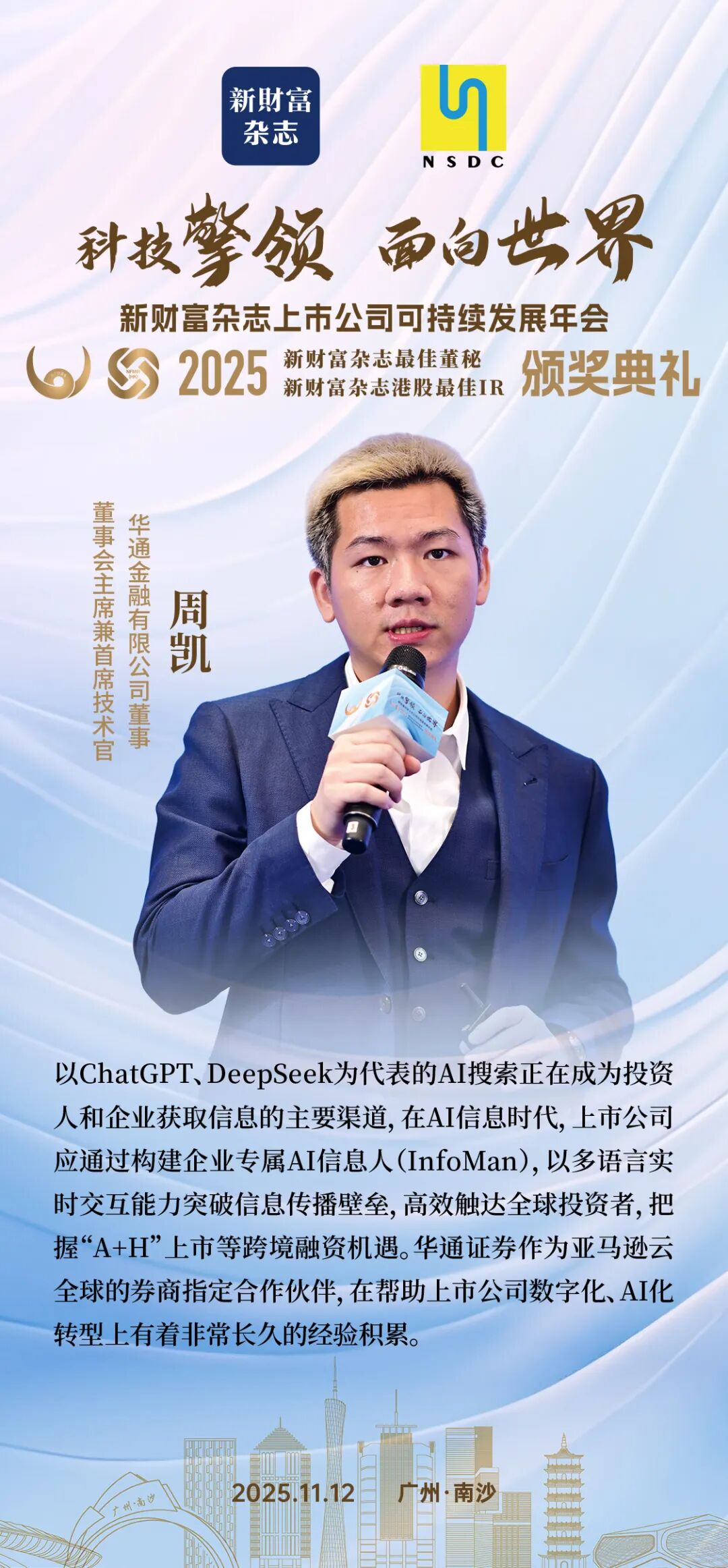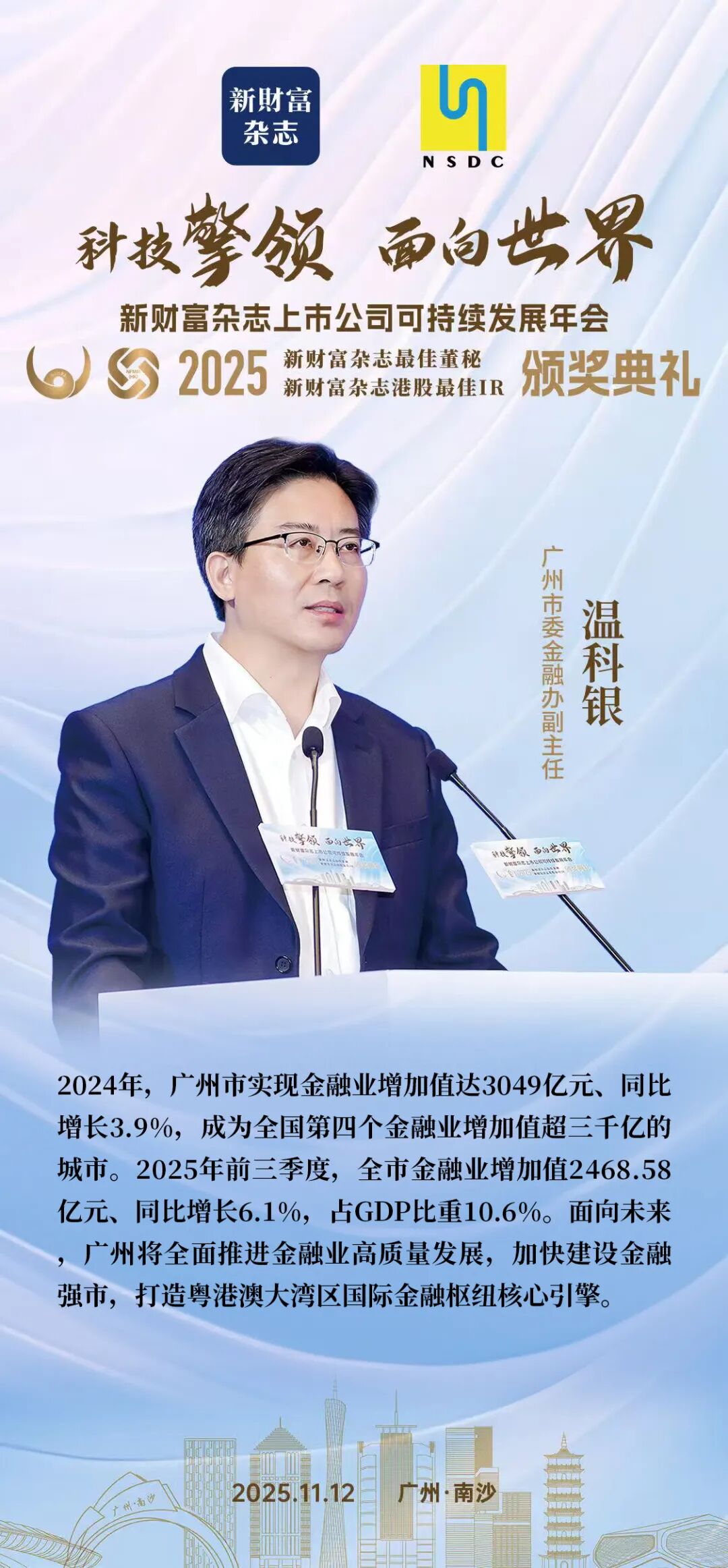 2025年11月12日,备受资本市场瞩目的“2025新财富杂志上市公司可持续发展年会暨最佳董秘、港股最佳IR颁奖典礼”在广州南沙隆重举办。