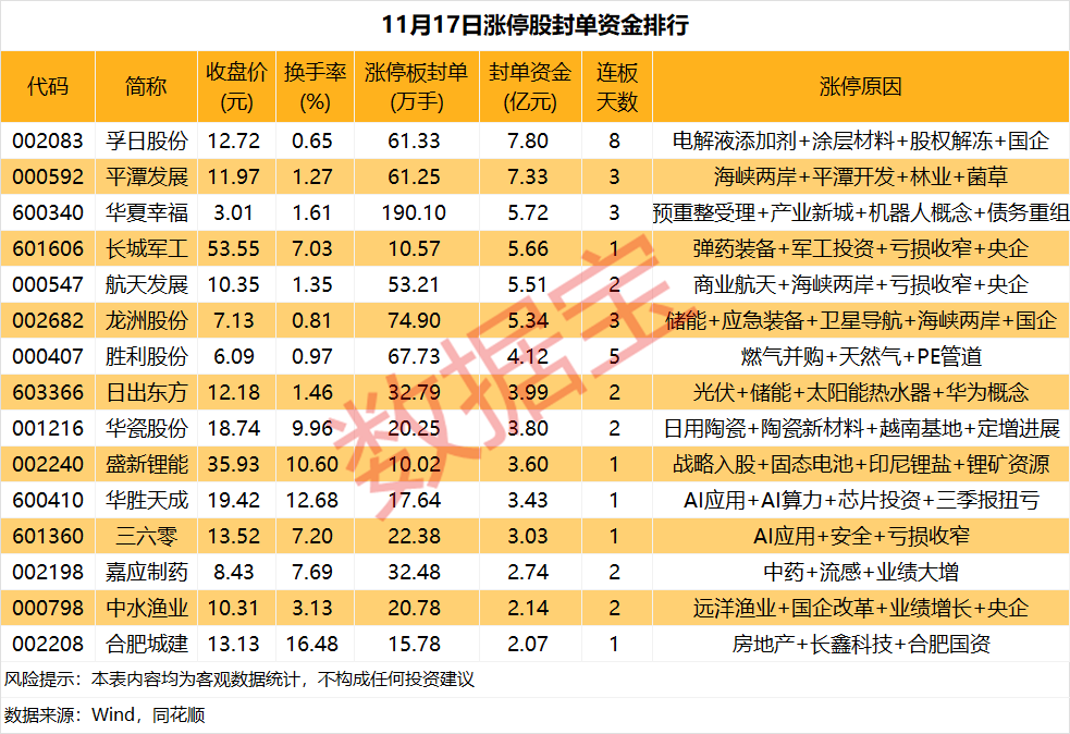 涨停战场:这只个股封单量逾190万手
