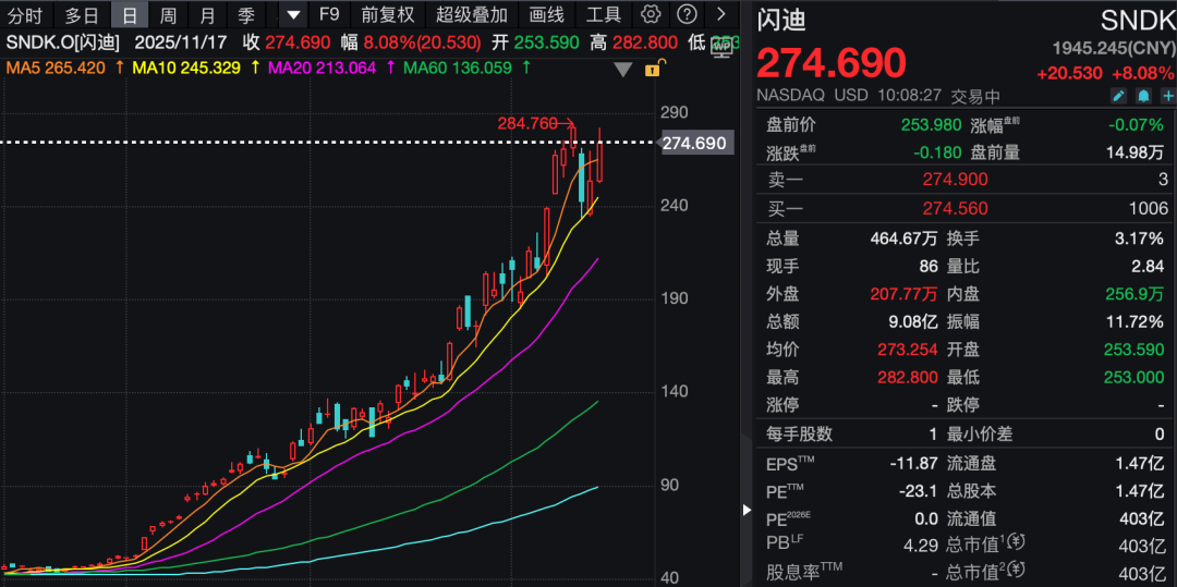 存储芯片股拉升,美光科技涨近4%,西部数据涨超3%,闪迪涨超8%。