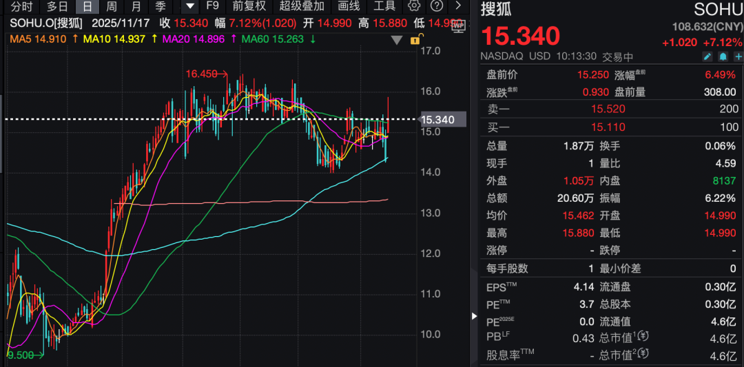 11月17日,搜狐公布2025年第三季度财务报告。财务数据显示,今年三季度,搜狐公司总收入为1.80亿美元,同比增长19%;归于搜狐公司的非美国通用会计准则净利润为900万美元,同比扭亏为盈,去年同期净亏损为1200万美元。