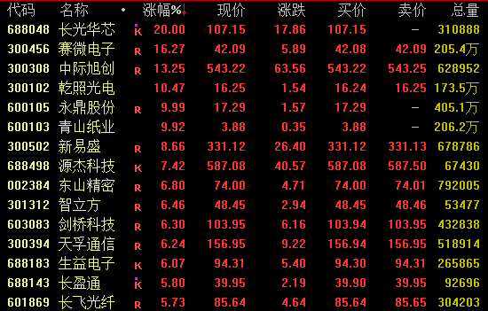 CPO概念等AI产业链股再度活跃,截至收盘,长光华芯20%涨停,赛微电子涨超16%,中际旭创涨逾13%续创历史新高,新易盛涨近9%,天孚通信涨逾6%。