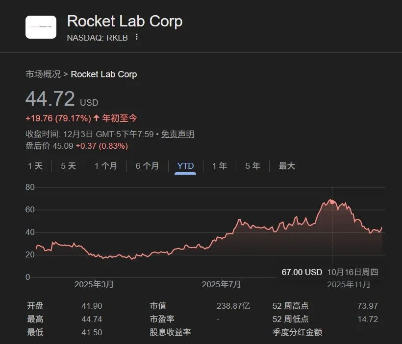 今年以来,Rocket Lab股价呈现平稳上涨态势。