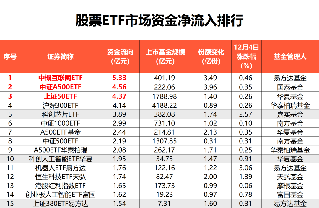 市场分化背景下,头部基金公司旗下ETF持续获得资金净流入。