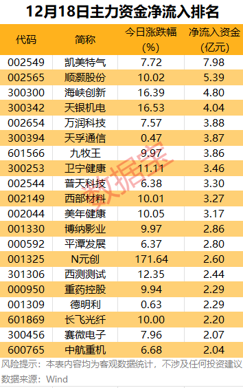 从个股来看,60股主力资金净流入超1亿元,11股获主力资金净流入超3亿元。