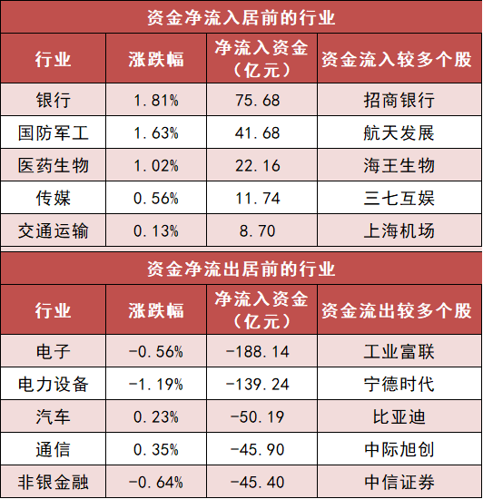 3.银行等行业实现主力资金净流入