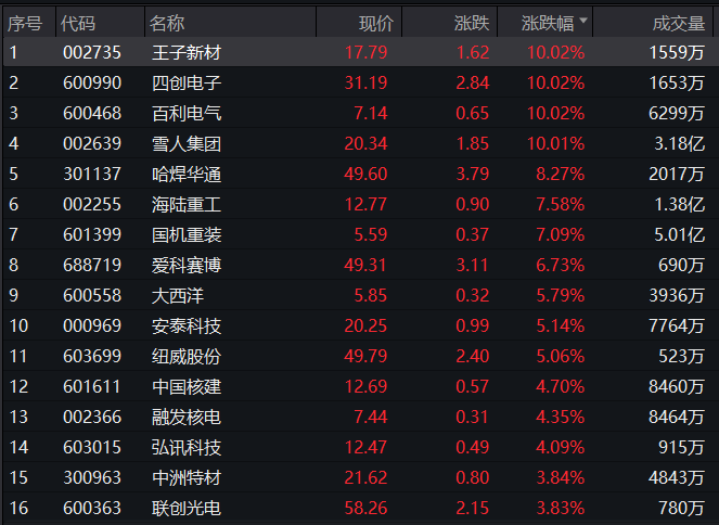 早盘,A股可控核聚变板块集体拉升,概念股平均上涨2.84%,四创电子、王子新材、百利电气、雪人集团4股涨停;其中雪人集团早盘涨停封单金额达到5.78亿元,哈焊华通、海陆重工、国机重装涨幅均超过7%。