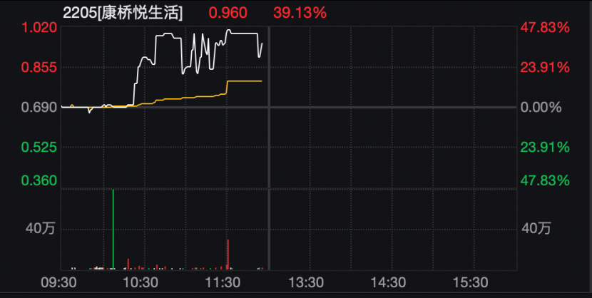 港股康桥悦生活股价一度大涨超过40%