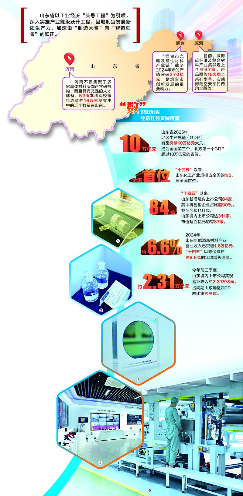 这些新材料细分领域的领军企业,凭借对产业痛点的洞察,突破技术瓶颈,不仅成为山东产业蝶变的缩影,更是山东“走在前、挑大梁”的强劲动力。