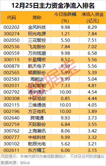 金风科技主力资金净流入8.29亿元,居首。据金风科技公众号消息,近日,安装98台金风机组的三峡江苏大丰800兆瓦海上风电项目完成全容量并网发电,该项目刷新了我国海上风电项目的离岸距离纪录。金风科技为项目提供了三种机型的智能海上风电机组,为这一工程提供装备支撑。