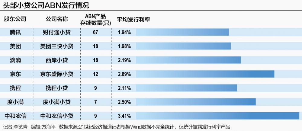 一家头部助贷机构人士告诉记者,出于发行ABS、ABN等融资需求,平台给自营小贷的资产优于助贷资产,但相对利率也难以探至12%以下区间。从信用分层来看,12%以下信贷资产一般对应城商行、信用卡覆盖的客群范围,资金成本不占优势的小贷公司往往难以与其形成竞争。