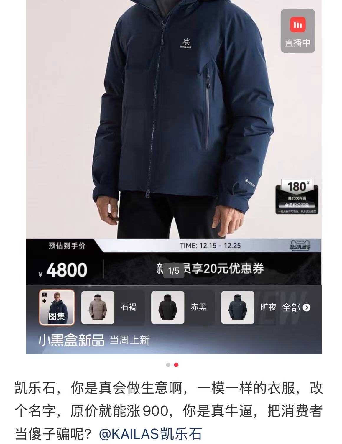 凯乐石陷“换名涨价”争议, 相似款羽绒服价差900元