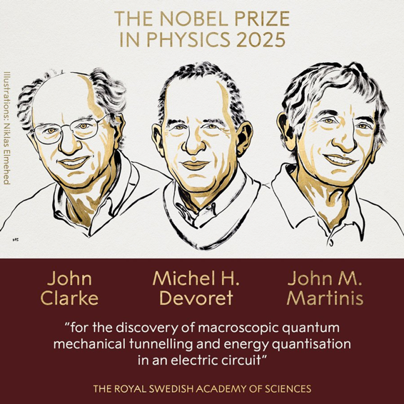 10月,诺贝尔物理学奖花落量子科技,表彰了超导量子电路技术为现代计算变革奠定的宏观基石。John Clarke、Michel H. Devoret与John M. Martinis因在上世纪80年代利用含约瑟夫森结的电路,首次观测到宏观量子隧穿与能级离散而获此殊荣。