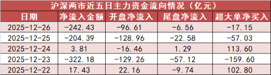 今日A股市场主力资金开盘净流出96.61亿元,尾盘净流出6.56亿元,全天净流出242.43亿元。