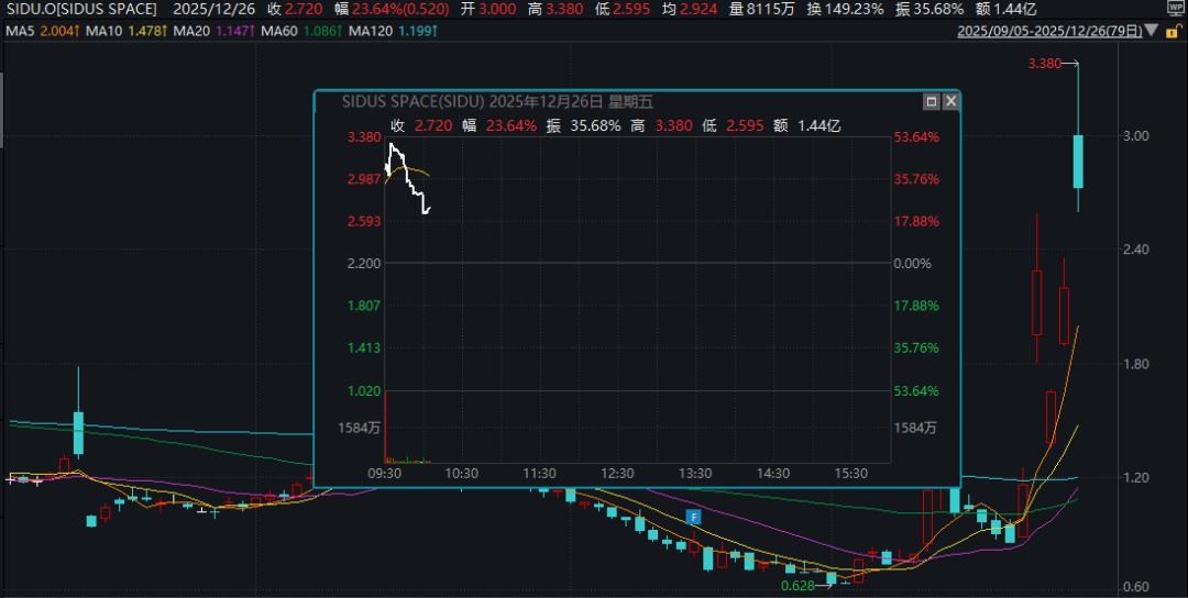 个股方面,太空概念股Sidus Space继续大涨,涨幅一度超过50%,目前涨幅收窄至23%左右。