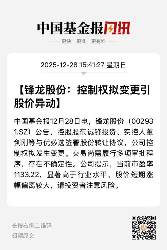 回溯来看,12月24日晚,优必选公告称,拟斥资16.65亿元收购锋龙股份9395万股股份(占总股本的43%),取得其控制权。本次交易完成后,锋龙股份控股股东将由诚锋投资变更为优必选,实际控制人由董剑刚变更为优必选创始人、董事会主席周剑。