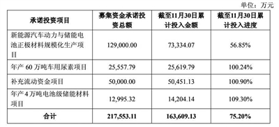 据介绍,龙蟠科技于2021年度非公开发行A股募集资金净额为217553.11万元,截至2025年11月30日,累计已使用募集资金163609.13万元。募集资金具体使用情况显示,“新能源汽车动力与储能电池正极材料规模化生产项目”累计投入金额73334.07万元,投入进度56.85%;年产60万吨车用尿素项目、年产4万吨电池级储能材料项目、补充流动资金项目投资进度均超过100%。