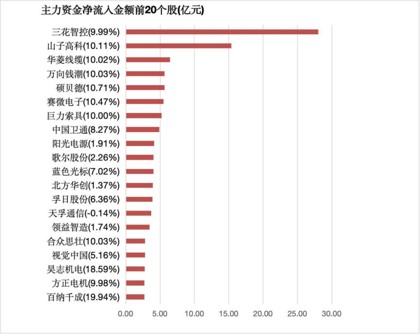 4.主力资金净流入居前20股