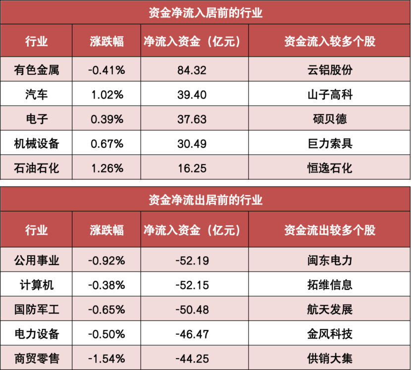 3.有色金属等行业实现净流入