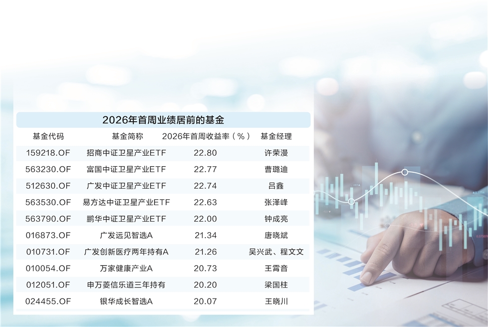基金经理提前“抢跑”的“春季躁动”行情,在2026年开年第一周便迅速兑现为亮眼的业绩。市场呈现出多点开花的结构性特征,尤其是在商业航天、科创芯片、创新药等成长主线上的精准布局,直接带动了一批主题基金的净值强势上攻,为投资者带来了丰厚的“开年红包”。