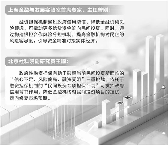 上海金融与发展实验室首席专家、主任曾刚接受记者采访时表示,融资担保机制通过政府信用增信,降低金融机构风险顾虑,可撬动更多信贷资金流向民间投资。同时,通过构建银担合作风险分担机制,提高金融机构对民企的风险容忍度,引导资金精准对接实体经济。