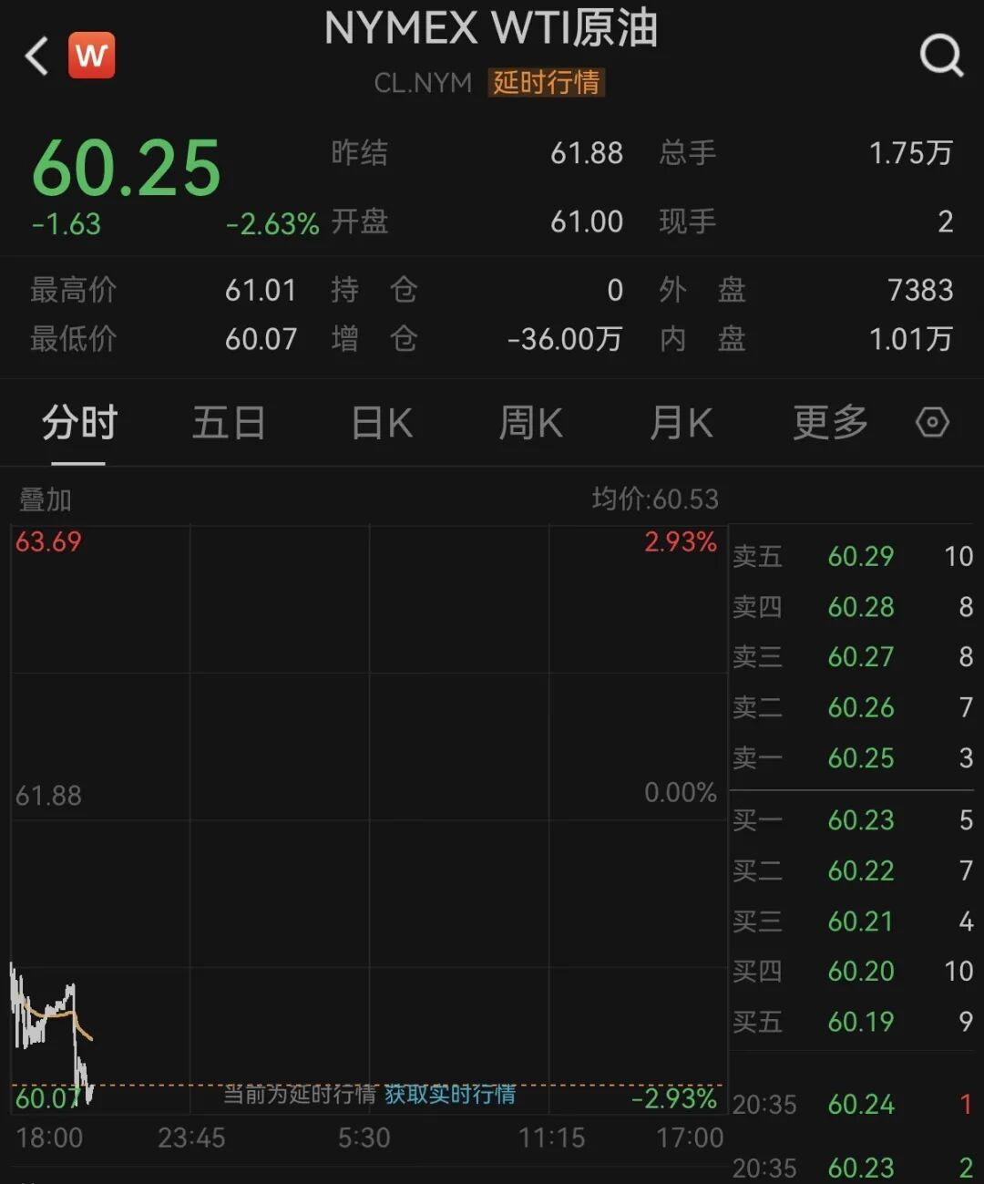 油价重挫。截至发稿,WTI原油报60.25美元/桶,跌幅为2.63%。当地时间1月14日,美国总统特朗普称支持委内瑞拉留在石油输出国组织。特朗普表示,他认为委内瑞拉留在石油输出国组织(欧佩克)对委内瑞拉自身更有利。