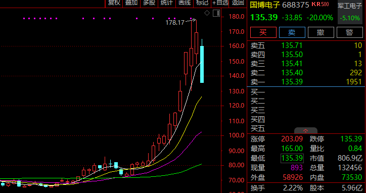 市场另一焦点是商业航天概念股继续大幅回落,国博电子、星环科技均于临近收盘20%跌停,再升科技、大业股份、雷科防务、中国卫通等都连续3日跌停,银河电子、中超控股、烽火通信、天奥电子等逾40股跌停或跌超10%。