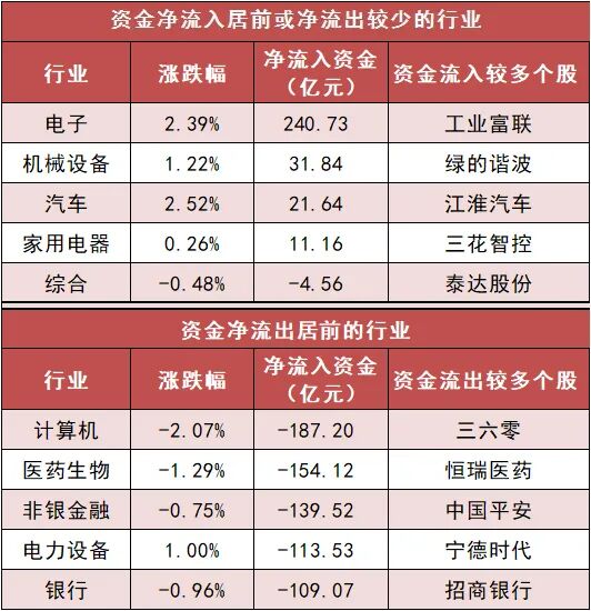 3.电子等行业实现净流入