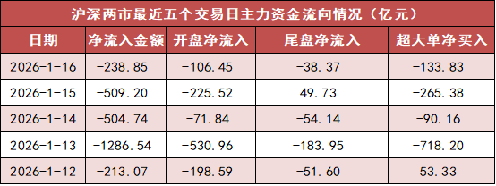今日沪深两市主力资金开盘净流出106.45亿元,尾盘净流出38.37亿元,全天净流出238.85亿元。