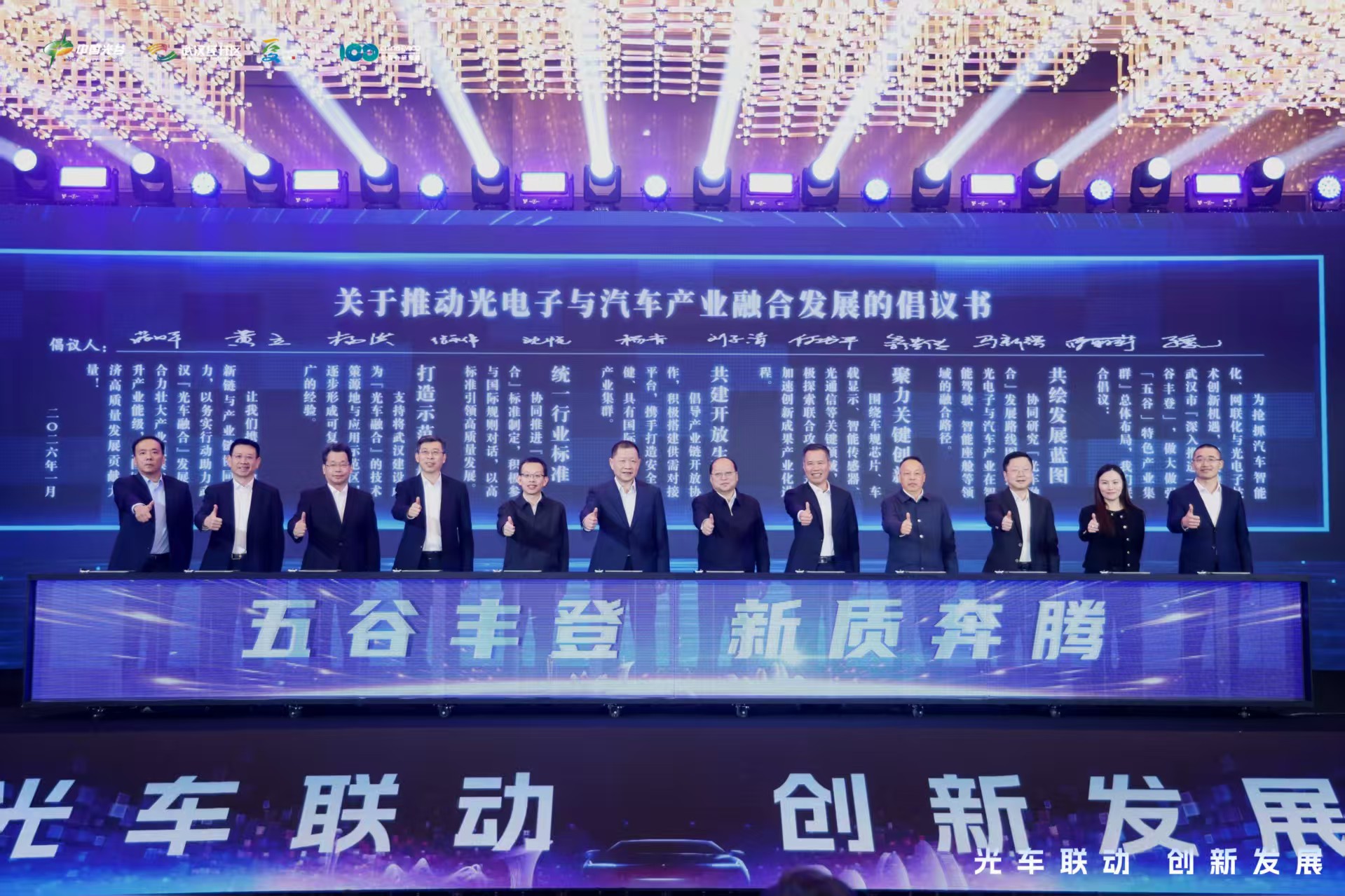 1月18日下午,在武汉举行的“光电子与汽车产业融合发展创新大会”上,东风汽车、中国信科、华工科技、高德红外等企业,联合武汉市经开区、东湖高新区、江夏区政府及车百会等机构,共同签署“光车联动”倡议书,围绕车规芯片、智能传感器、光通信等“卡脖子”环节,建立联合攻关机制,协同研究“光车融合”技术路线,支持武汉建设“光车融合”的技术策源地与应用示范区。