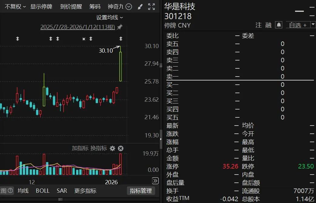 华是科技(301218)易主落地,郑剑波成为公司新实控人。1月19日华是科技公告,公司股票自1月20日起复牌。停牌前公司股价大涨。