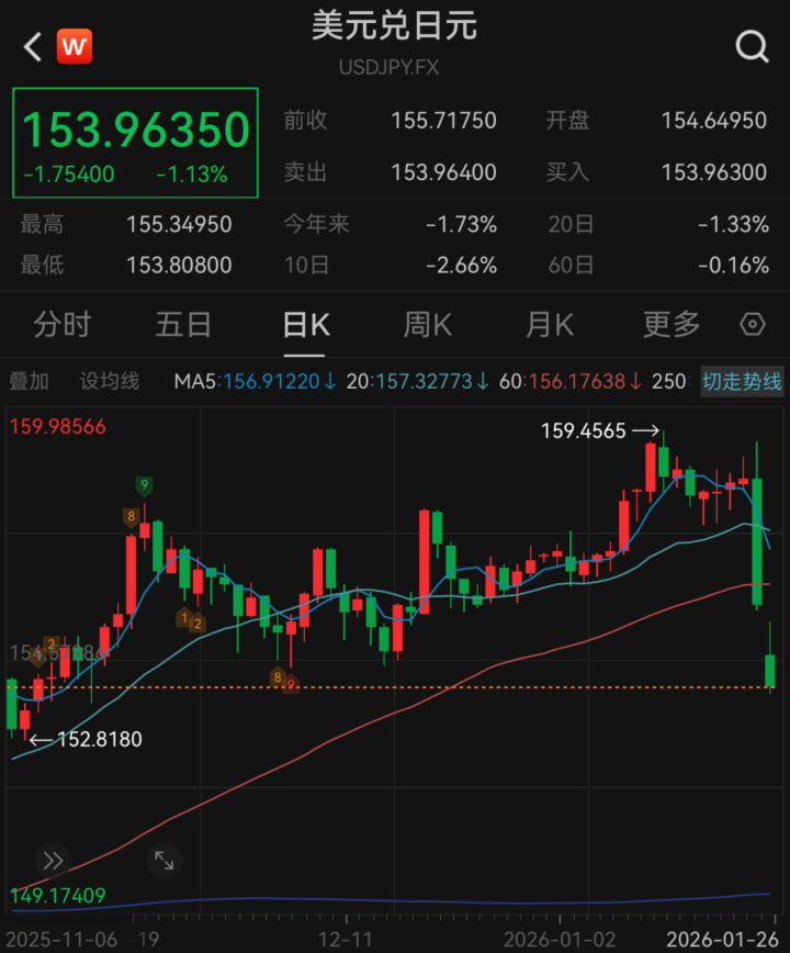 有分析指出,这一波美元下跌的主要原因是,日本首相高市早苗上周日对市场发出警告称,政府将采取“一切必要措施”应对市场的投机性和极度异常波动。