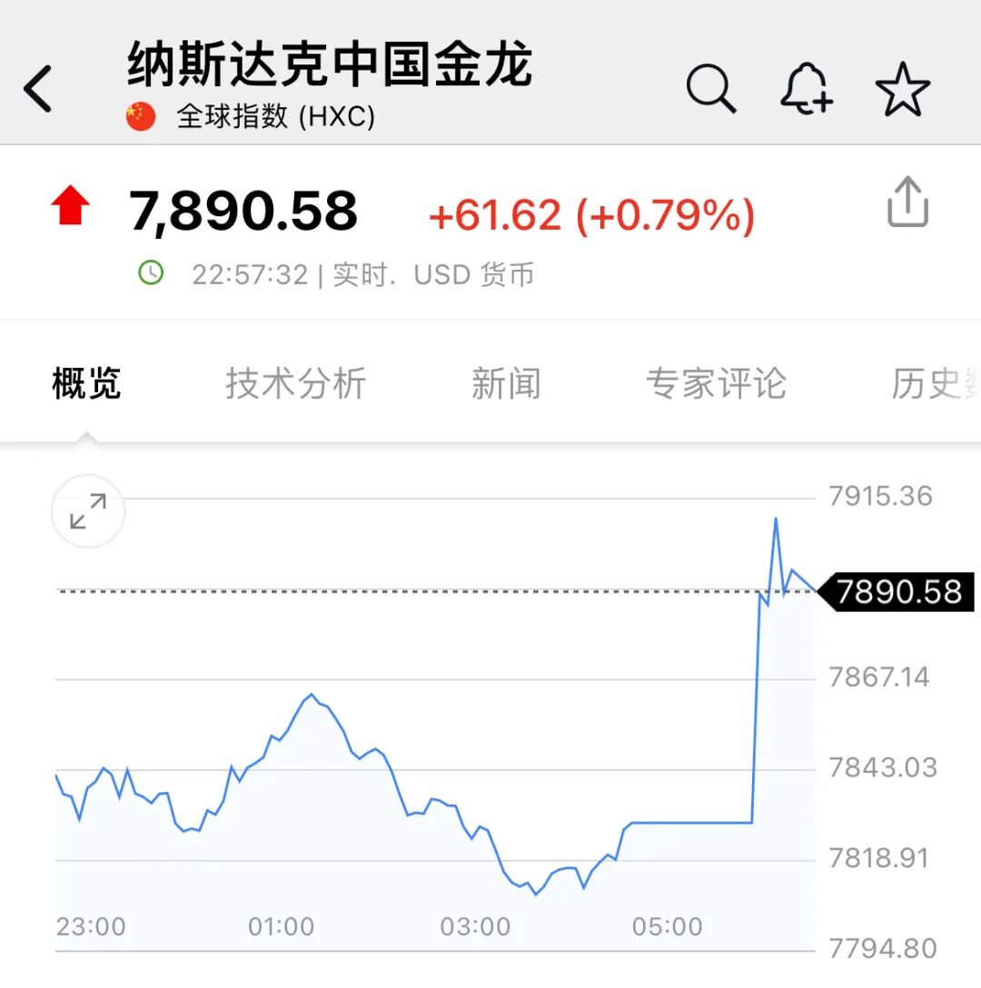 纳斯达克金龙中国指数盘初拉升,涨幅一度超过1%,截至发稿仍涨0.79%。虎牙涨15.97%,金山云涨11.54%,中进医疗涨8.68%,世纪互联涨7.08%,哔哩哔哩涨4.29%。