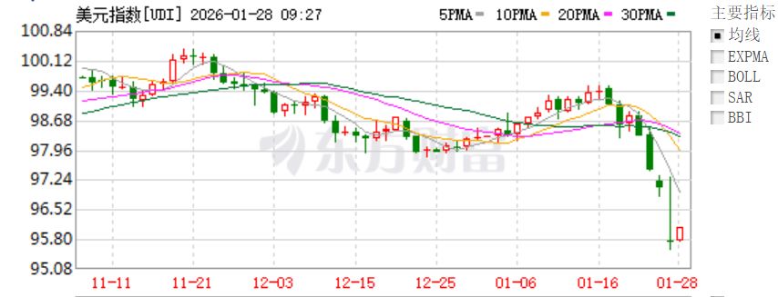 截至发稿,美元指数暂报95.982,涨0.0700%。