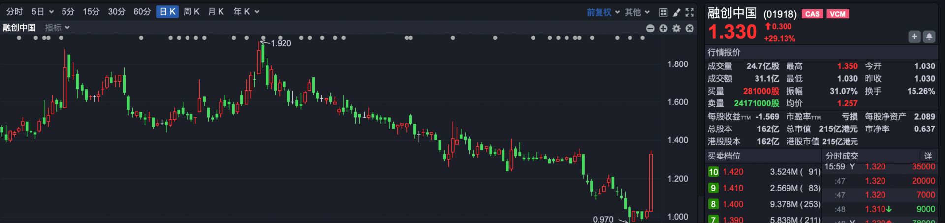热点方面,内房股普涨,融创中国(HK01918)涨超27%,世茂集团(HK00813)、佳兆业集团(HK01638)、富力地产(HK02777)涨超20%,碧桂园(HK02007)涨超16%,雅居乐集团(HK03383)等多只地产股涨超10%,万科企业(HK02202)涨超8%。
