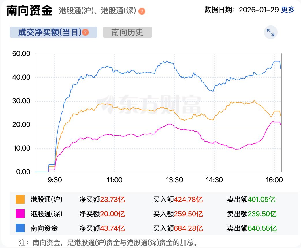 资金方面,今日南向资金重新回流港股。截至收盘,南向资金净买入港股超43亿港元。