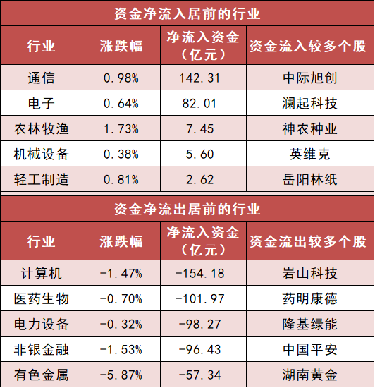 3.通信等行业实现净流入