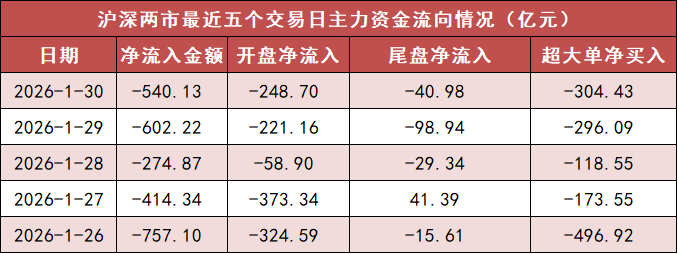 1. 两市主力资金净流出超540亿元