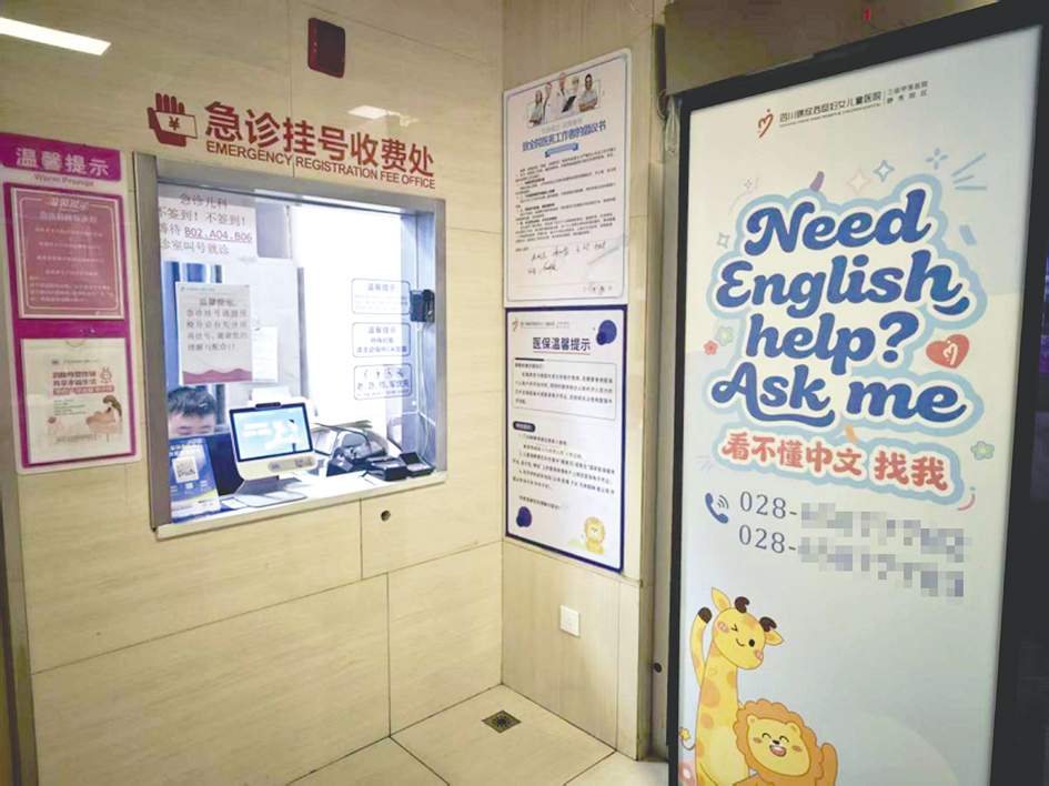 这家医院的多语种志愿者团队规模也从5人扩充至12人,新增了法语、俄语等服务项目,并且还在陆续开通国际商业保险直接支付等服务,以便我们这些外籍人士就医。漫步在医院走廊,能看到一张十分醒目的海报,它专为外国患者提供语言服务支持。