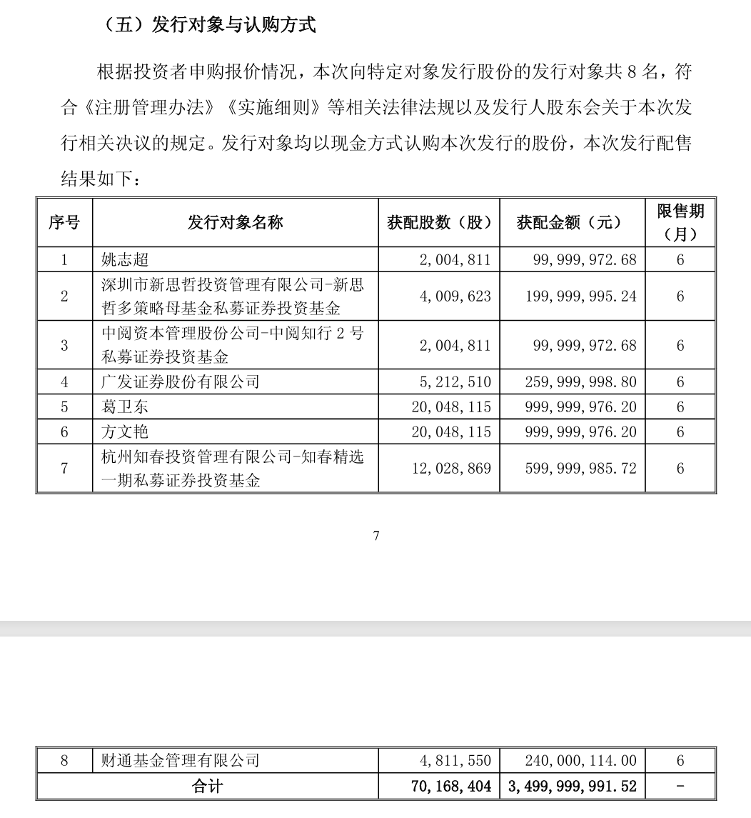2月10日晚间,江淮汽车(600418.SH)总募资金额接近35亿元的定增股份获配结果正式出炉,包括葛卫东和方文艳两大牛散和三家知名私募在内的8名投资者累计获配7016.84万股公司定增股份,获配价格为49.88元/股。