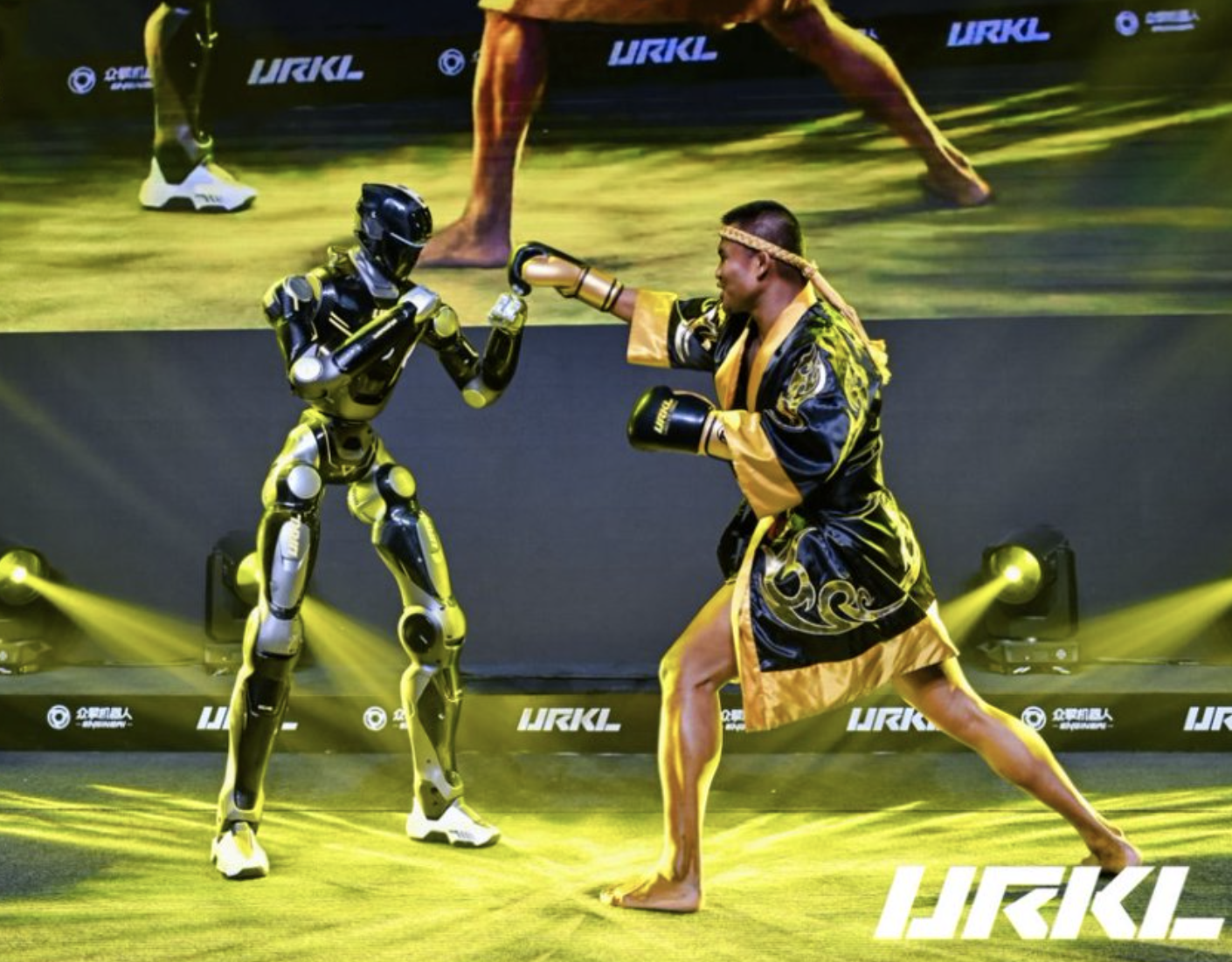 URKL发布会现场,众擎T800与真人拳王“实战” 图片来源:众擎