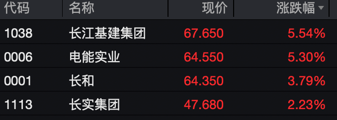 受该消息影响,26日盘中,长和系股票集体拉升,截至发稿,长江基建集团、电能实业涨超5%,长和涨超3%,长实集团涨超2%。